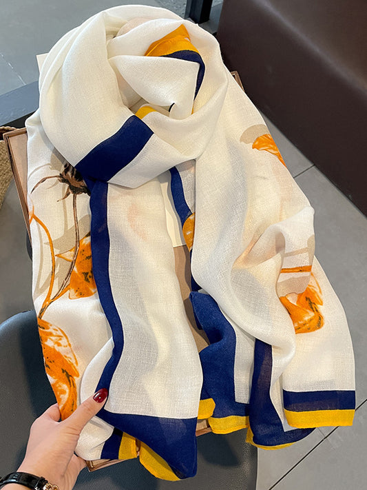 Flower Print Contrast Color Scarf