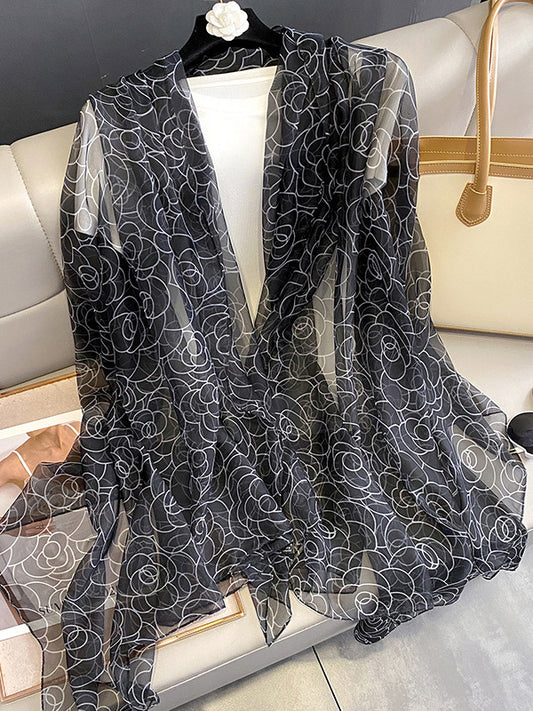Chic Floral Printed Silk Imitation Warm Shawl&Scarf