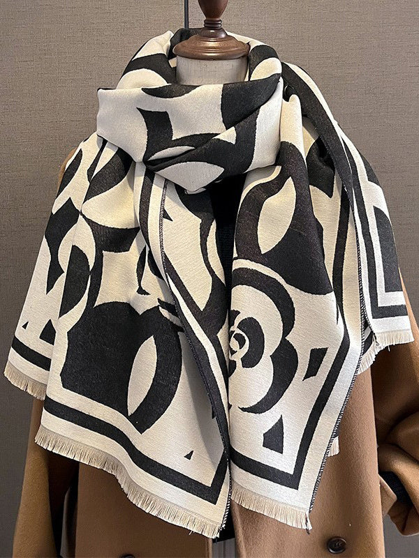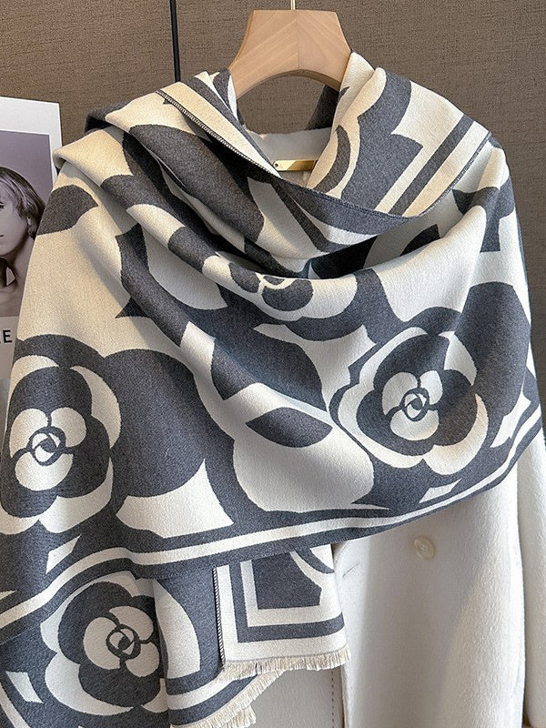 Knitted Flower Keep Warm Fringed Shawl&Scarf