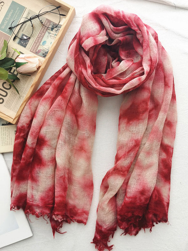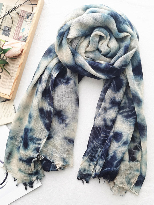 Vintage Tie-Dyed Fringed Scarf